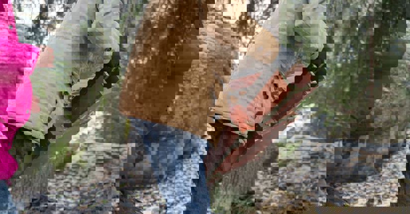 Tillsammans med två elever tar Bogdan med sig ett igelkottsbo från slöjdsalen ut till ett skogsparti bredvid skolan. Här hjälps de åt att fylla det med löv och placera det bra under ett barrträd. Väl på marken täcks det av ihopsamlade löv, för att skapa en trivsam plats för igelkottarna. Här kan de krypa in och ta skydd från väder och vind. Koordinaterna för platsen läggs in i en karta för att Bogdan och eleverna enkelt ska hitta tillbaka.