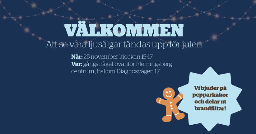 För andra året i rad tänder vi våra ljusälgar vid gångstråket ovanför Flemingsberg centrum. Tillsammans med ljusslingor och annan belysning gör de en annars mörk årstid ljusare och trevligare. Vi vill bjuda in dig till invigningen - kom och prata med oss på Huge och se älgarna praktfullt tändas. Vi bjuder på pepparkakor och gratis brandfiltar.