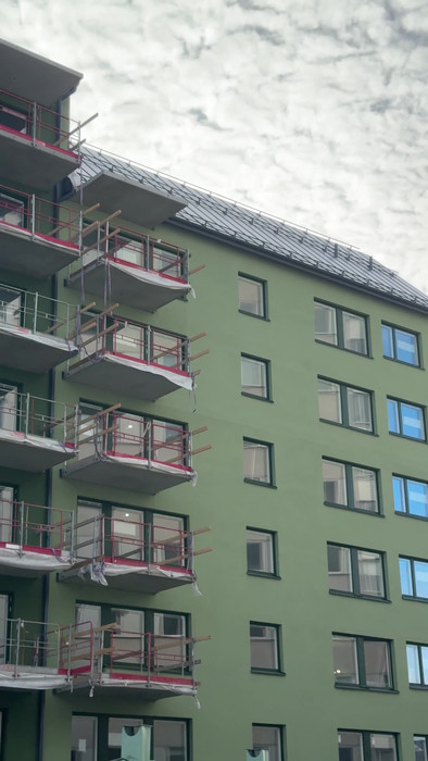 – Det är ovanligt här men används flitigt i städer och ger barnen en trygg plats att leka på. Och den ljusare färgen på fasaden mot innergården kommer att lysa upp. Dessutom växer en jättestor gammal ek intill husen och den kommer vara häftig att ha utsikt över, säger Raina.